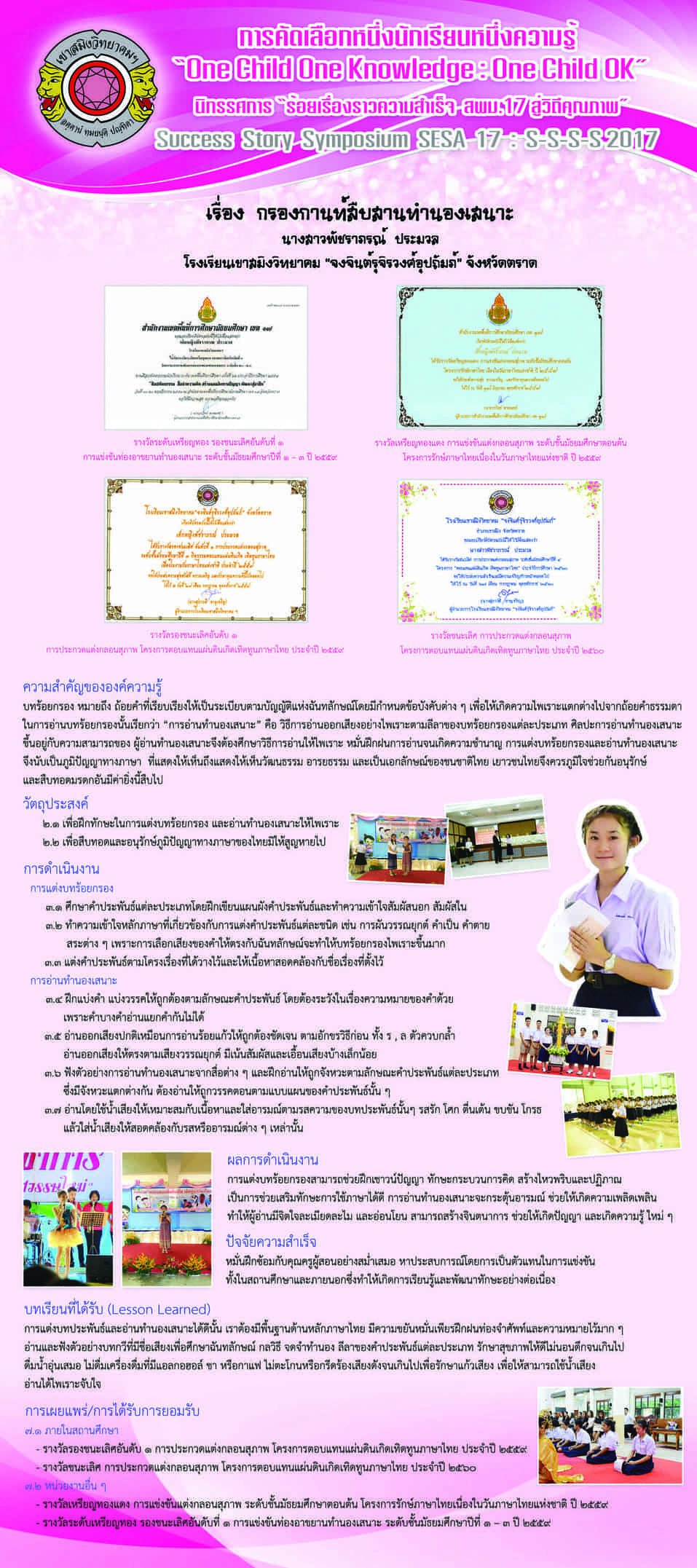 กรองกานท์สืบสานทำนองเสนาะ ปีการศึกษา 2560