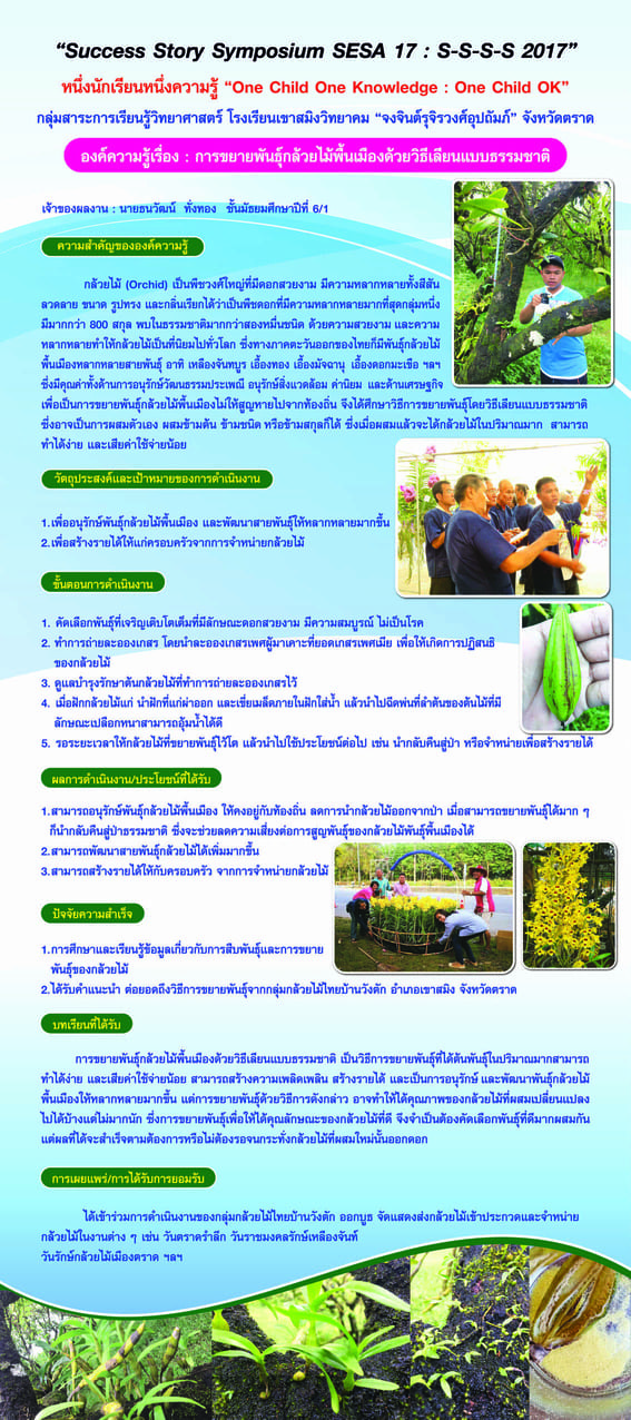 การขยายพันธุ์กล้วยไม้พื้นเมืองด้วยวิธีเลียนแบบธรรมชาติ ปีการศึกษา 2560