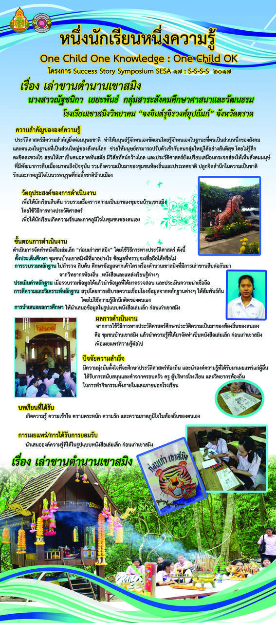 หนึ่งนักเรียนหนึ่งความรู้ เรื่องเล่าขานตำนานเขาสมิง ปีการศึกษา 2560